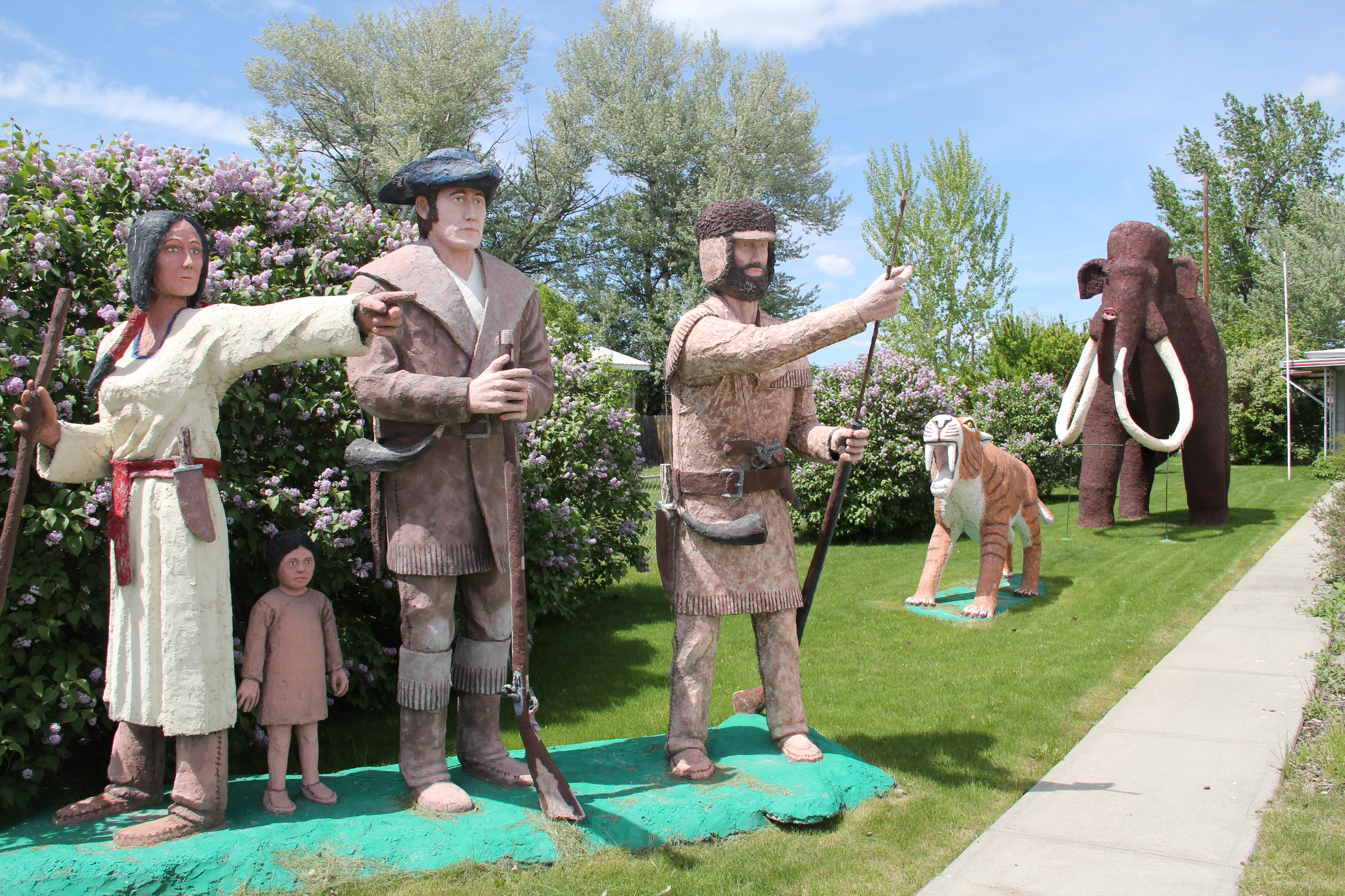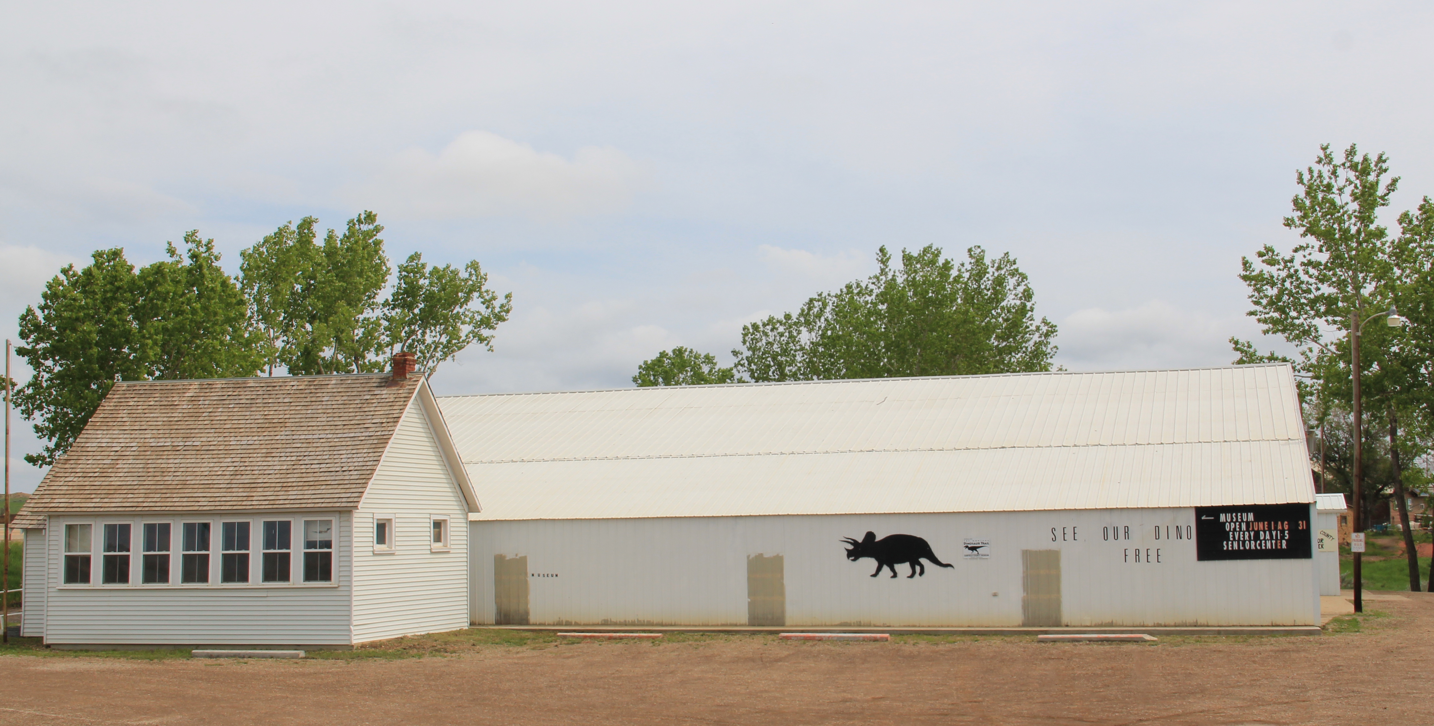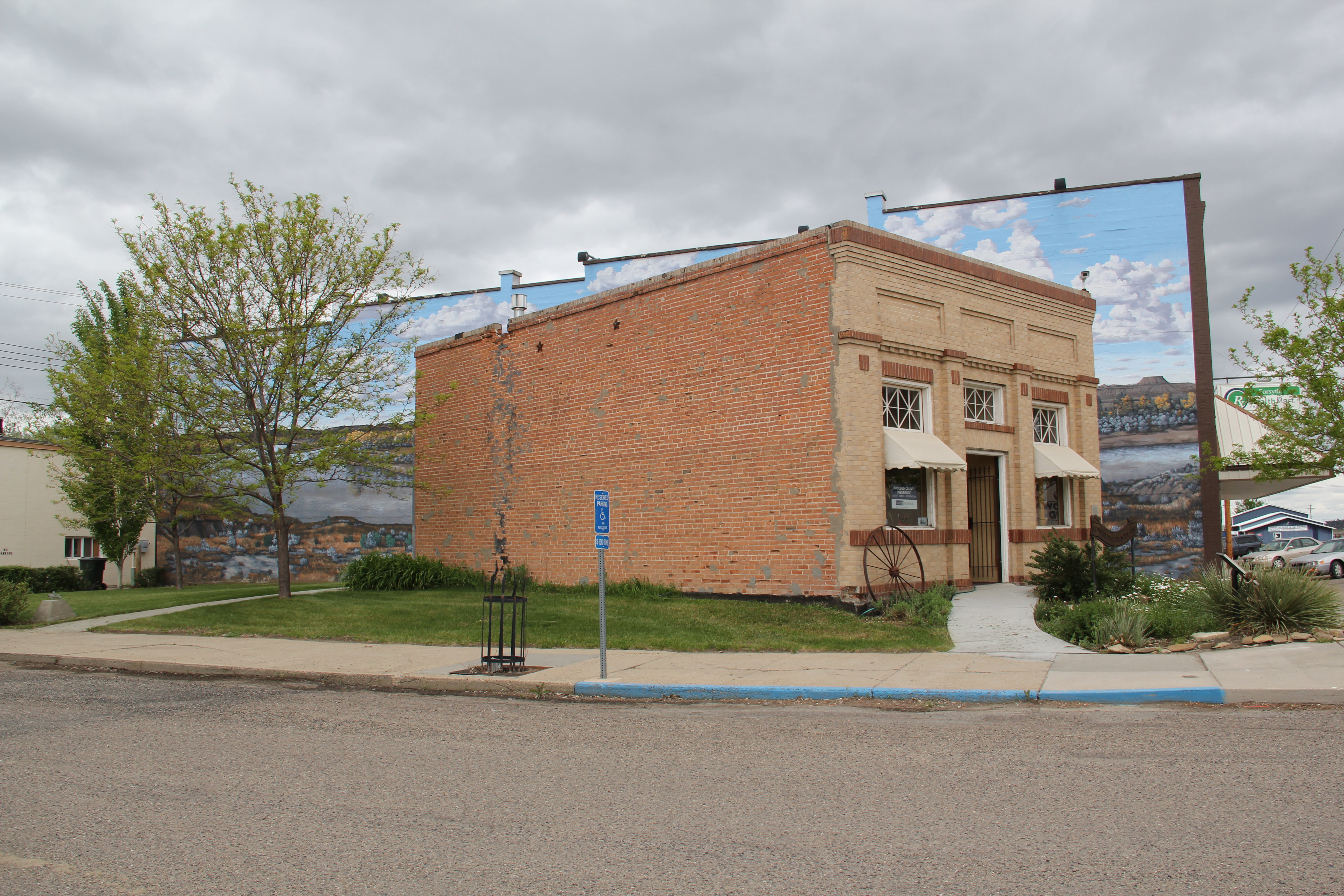 Another change was the growth of the local heritage offerings, from the Veterans Memorial park, kiosk, and sculpture to the Garfield County museum in Jordan–the old schoolhouse making it easy to locate along the road–and various reminders to passerby’s, like the mural on the town’s old service station/auto dealership, that the county had been a major location of dinosaur finds in the late 20th century.
