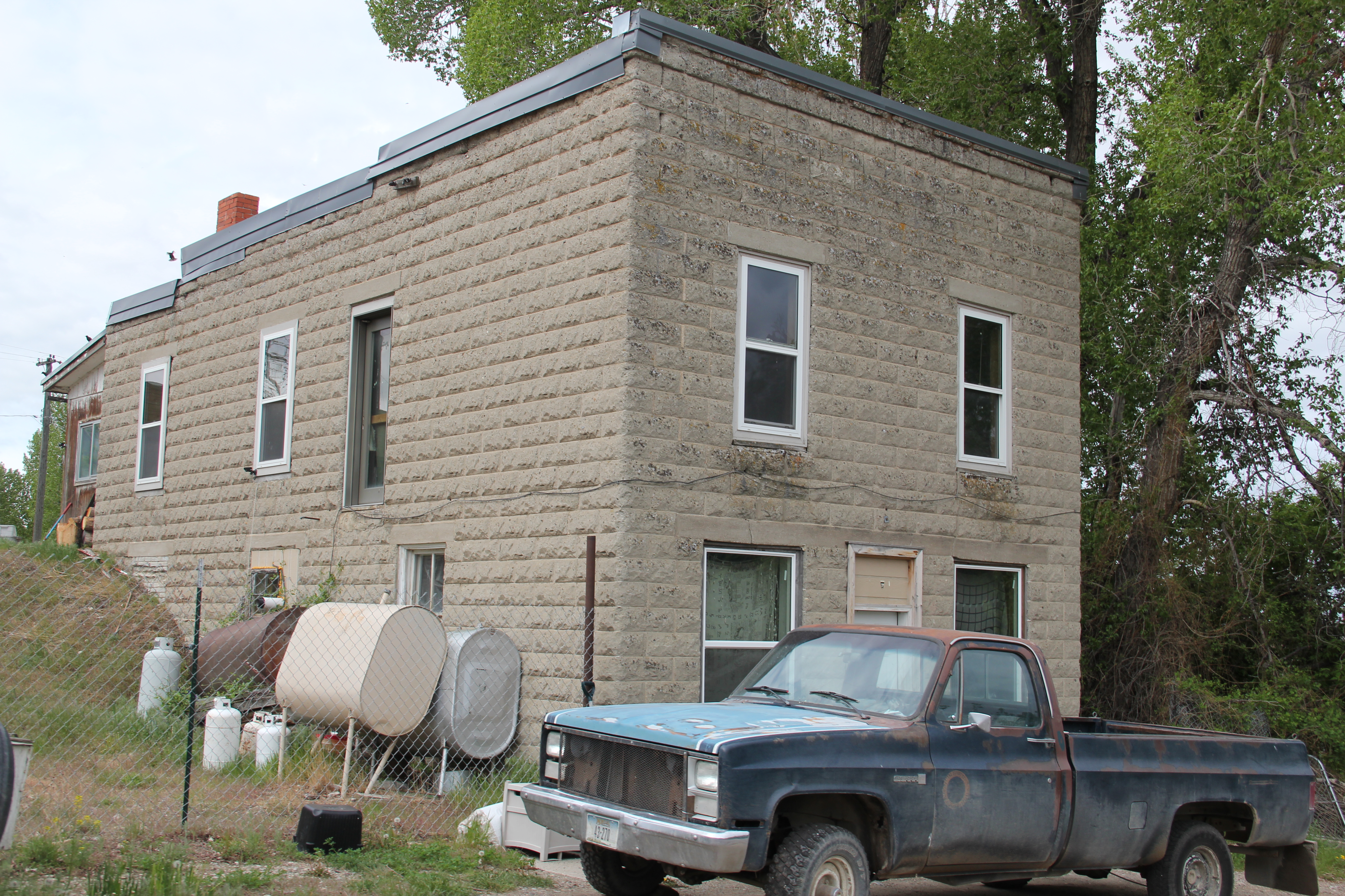 In 1984 I came looking for railroad depots, frankly, but was blown away by the Farmers State Bank, one of the best “strongbox” style of small town banks I had encountered anywhere in Montana. The town then was in a pattern of slow, steady decline, from a high of 435 residents in 1950 to 356 in 1980. That rate in most Montana country towns meant that the bank was long gone–but here it remained and stood proudly along Highway 81.