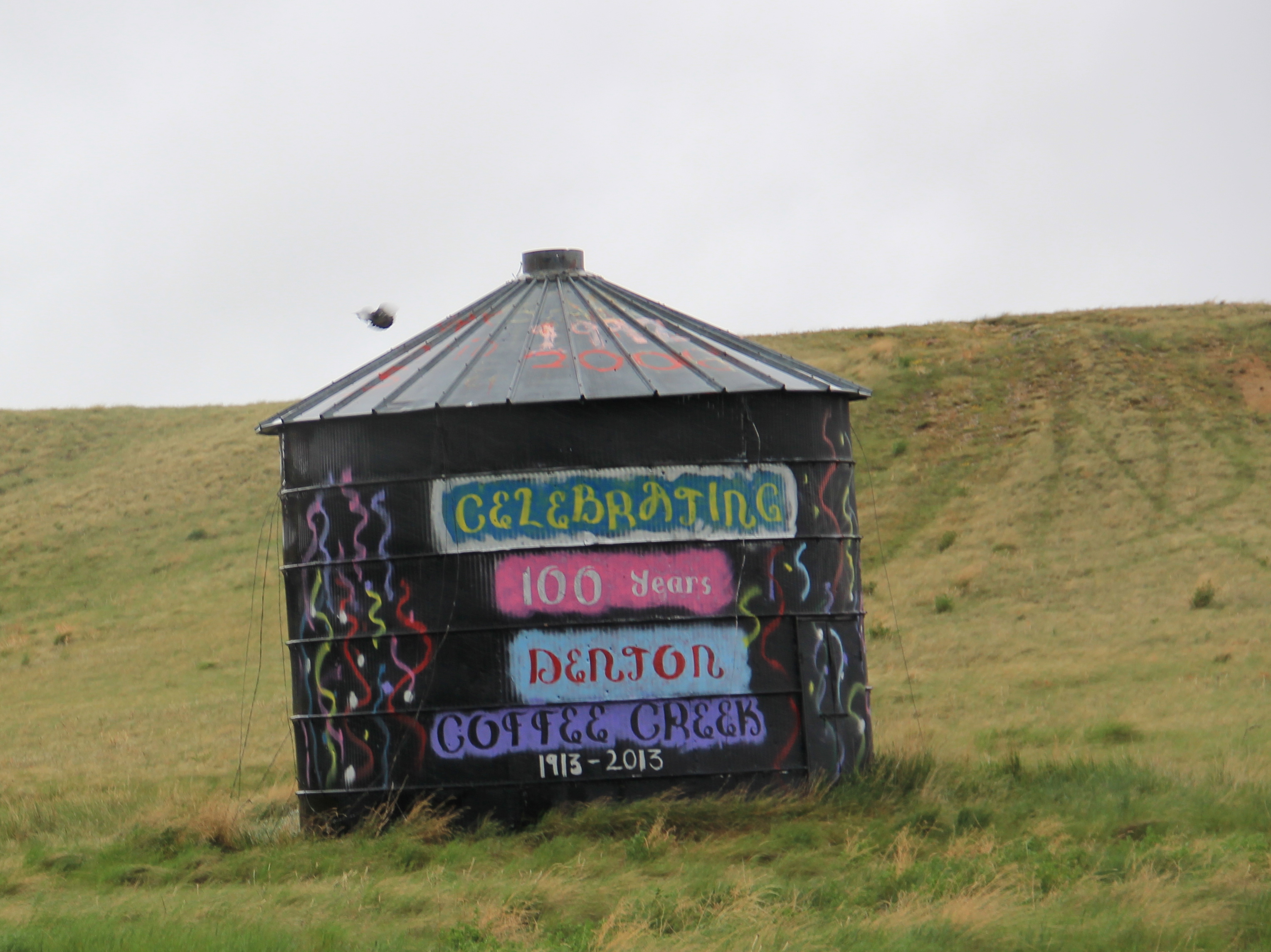 True, Denton and its neighbor to the west Coffee Creek celebrated their centennials in 2013. And it was appropriate that a granary announced this fact since grain is king here. The elevators standing along the old Milwaukee Road line still boldly state the importance of agriculture to Denton. Even after the Milwaukee ceased operations in 1980 state officials worked with local governments and ranchers to create a new Central Montana line, which kept the elevators running, and in more recent times, has made Denton the western terminus of the popular Charlie Russell Choo-Choo excursion train.