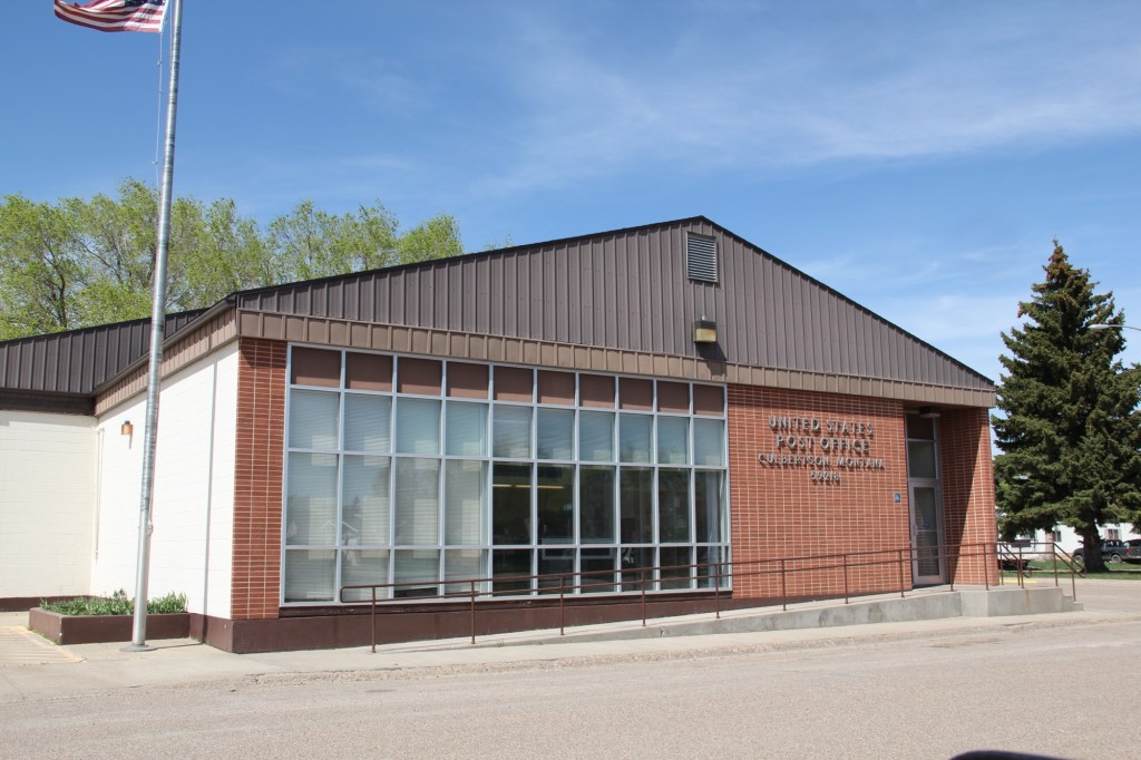 The design of U.S. post offices moved away from the preference for Colonial Revival styles in the first half of the 20th century and embraced a modern look as shown in Culbertson (top) and Scobey (bottom).