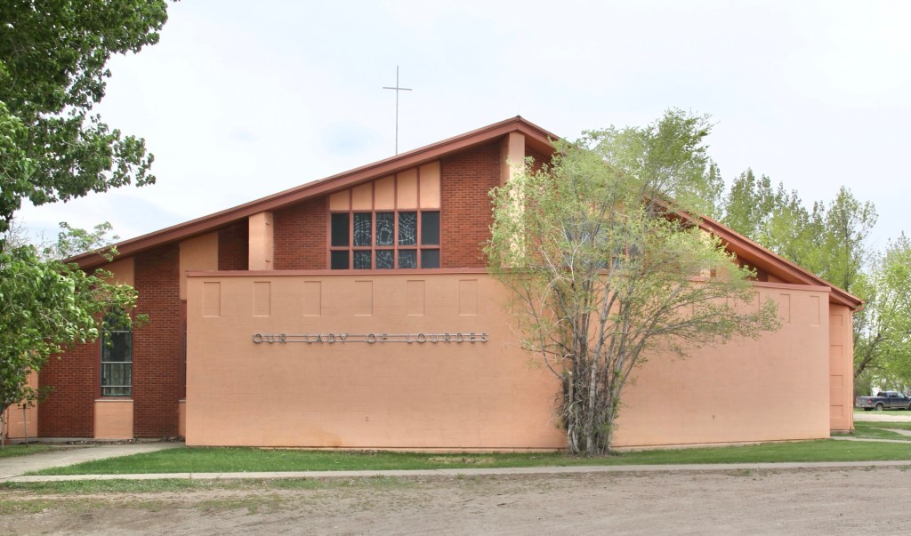 Our Lady of Lourdes Catholic Church, a 19th century congregation, in Wolf point ends our regional tour of Montana modernism. the building reflects the diocesan decision to build contemporary style churches in towns large and small through eastern Montana in the 1950s and 1960s.