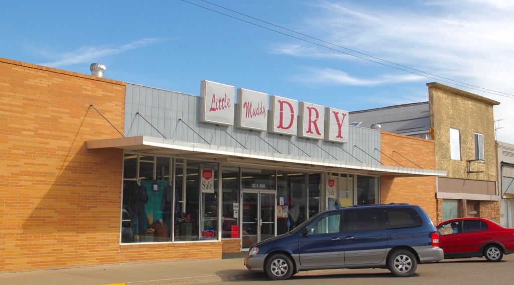 Colorful metal sheathing over old storefronts helped owners update their businesses from the 1960s into the 1980s, enabling downtown locations seem more like shopping centers. The top example is from Plentywood while the bottom, Bryan’s, is from Wolf Point.