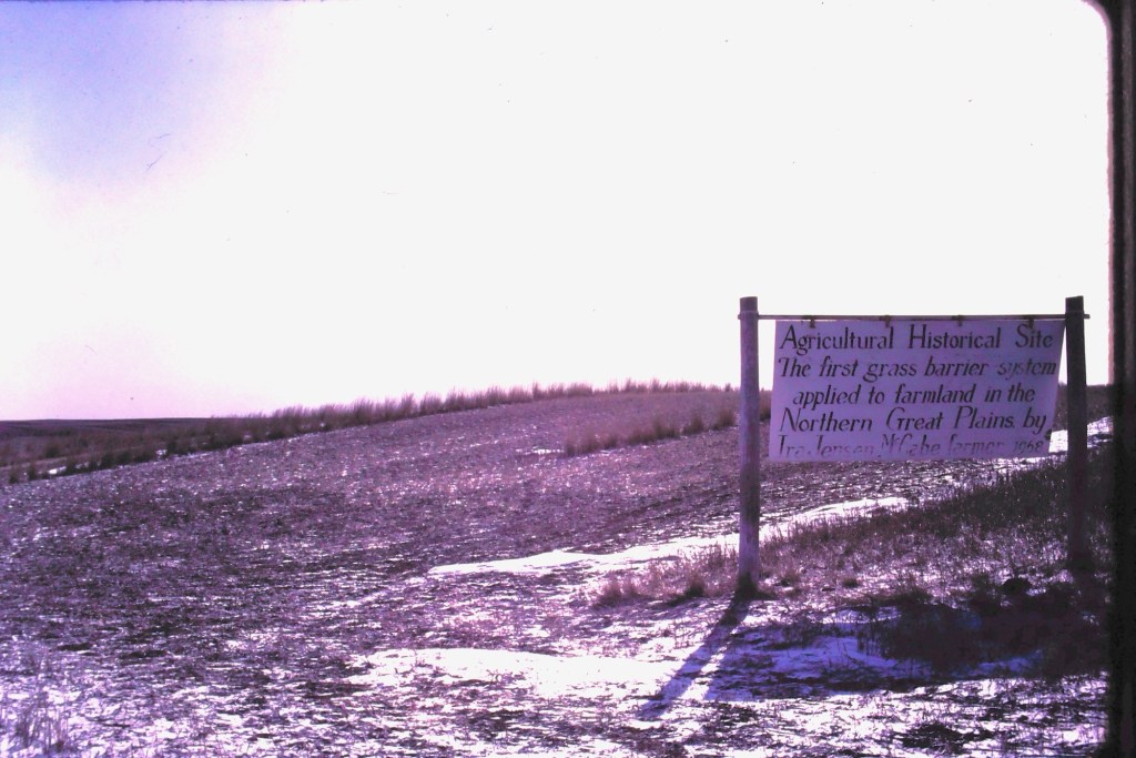 But early in that survey work in March 1984 I encountered along Highway 16 in Roosevelt County a sign that marked an “Agricultural History Site” crediting farmer Ira Jensen McCabe for the northern plains’ first “grass barrier applied to farmland.”