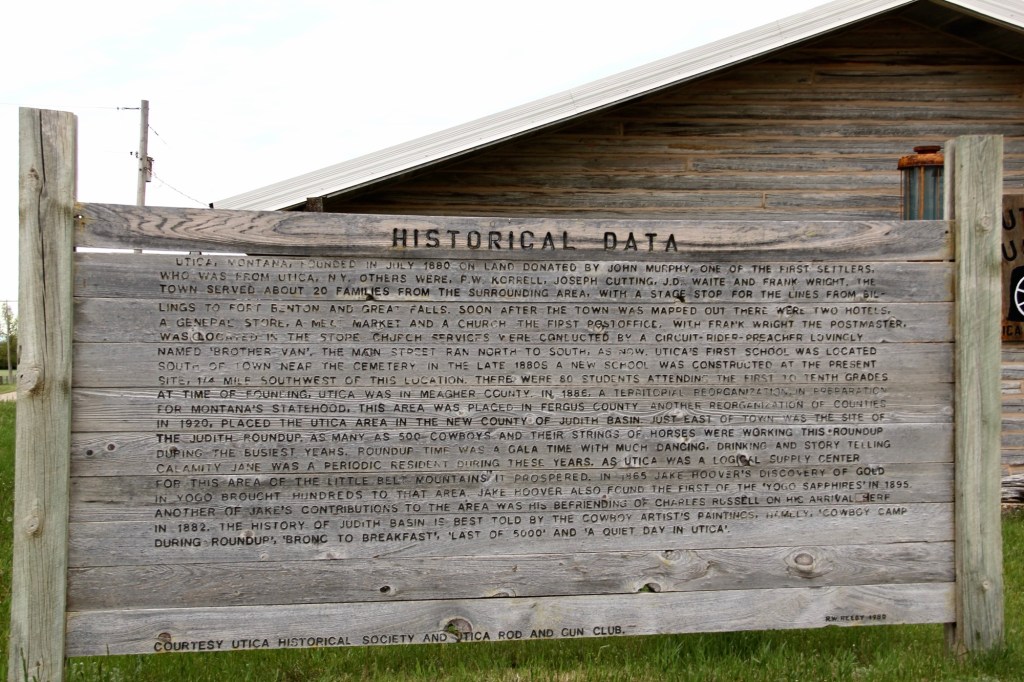 Grass Range seems concise and to the point compared to the Historical Data marker at Utica crafted by R.W. Reedy in 1980 for the Utica Historical Society and the Utica Rod and Gun Club.