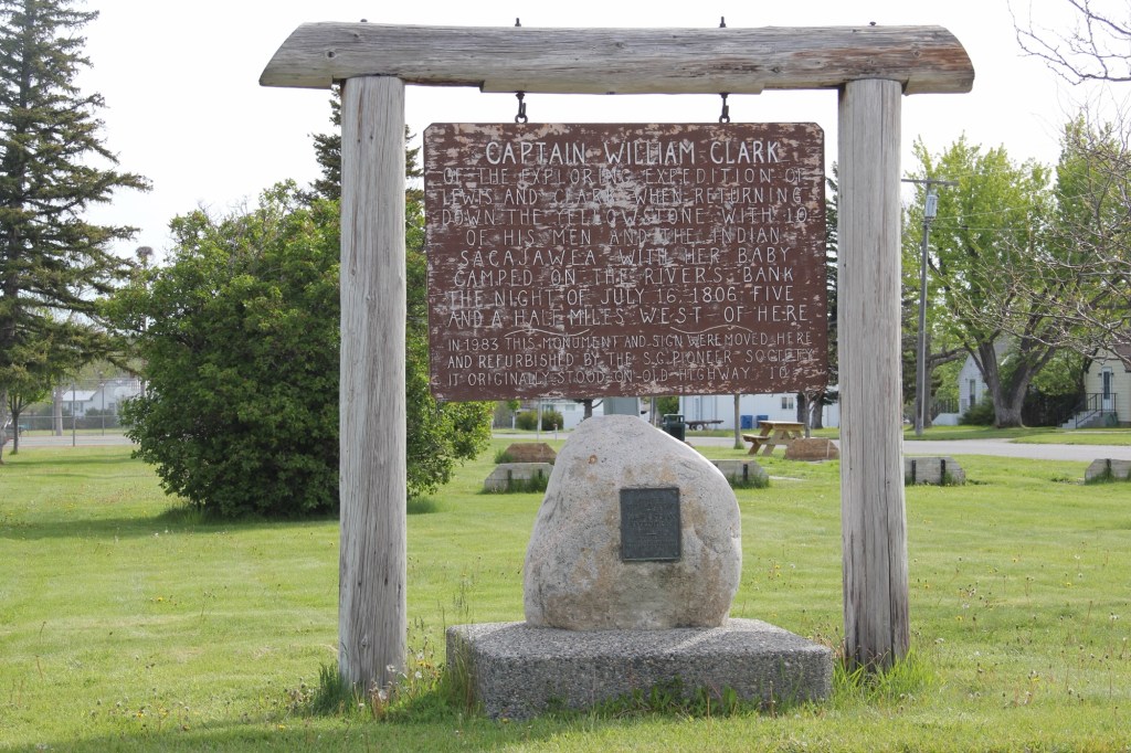 In Big Timber this marker (above) about Captain William Clark was on old U.S. Highway 10 until 1983 when it was moved to the city park of Big Timber. It was fresh and somewhat shiny then—40 years later it’s a bit worse for wear.