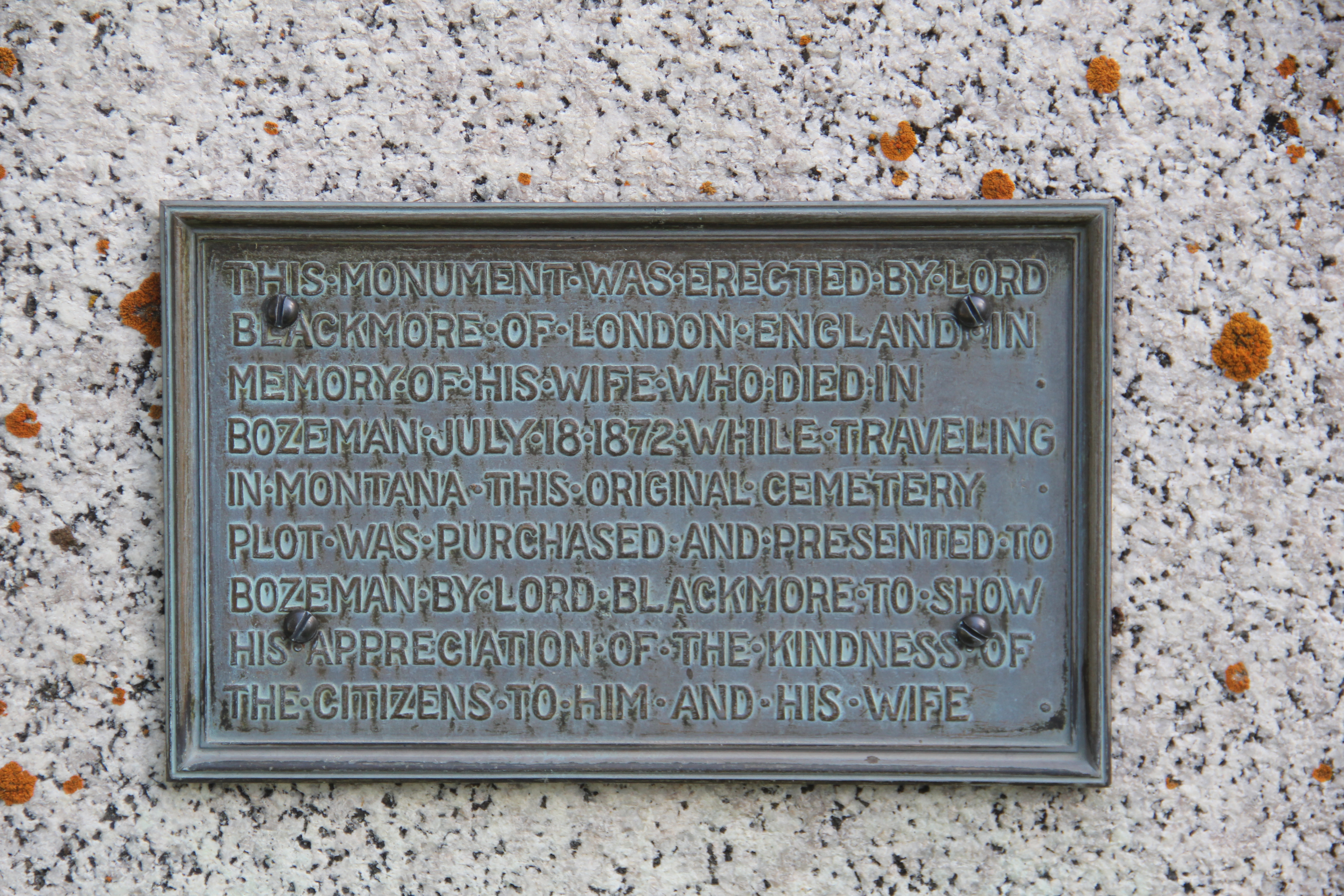 Within the cemetery is one of the oldest physical remnants from the city’s beginning: the marker for Lady Mary Blackmore, July 1872, when Bozeman was nothing more than a string of tents, log cabins, and false front buildings along the Bozeman Trail.