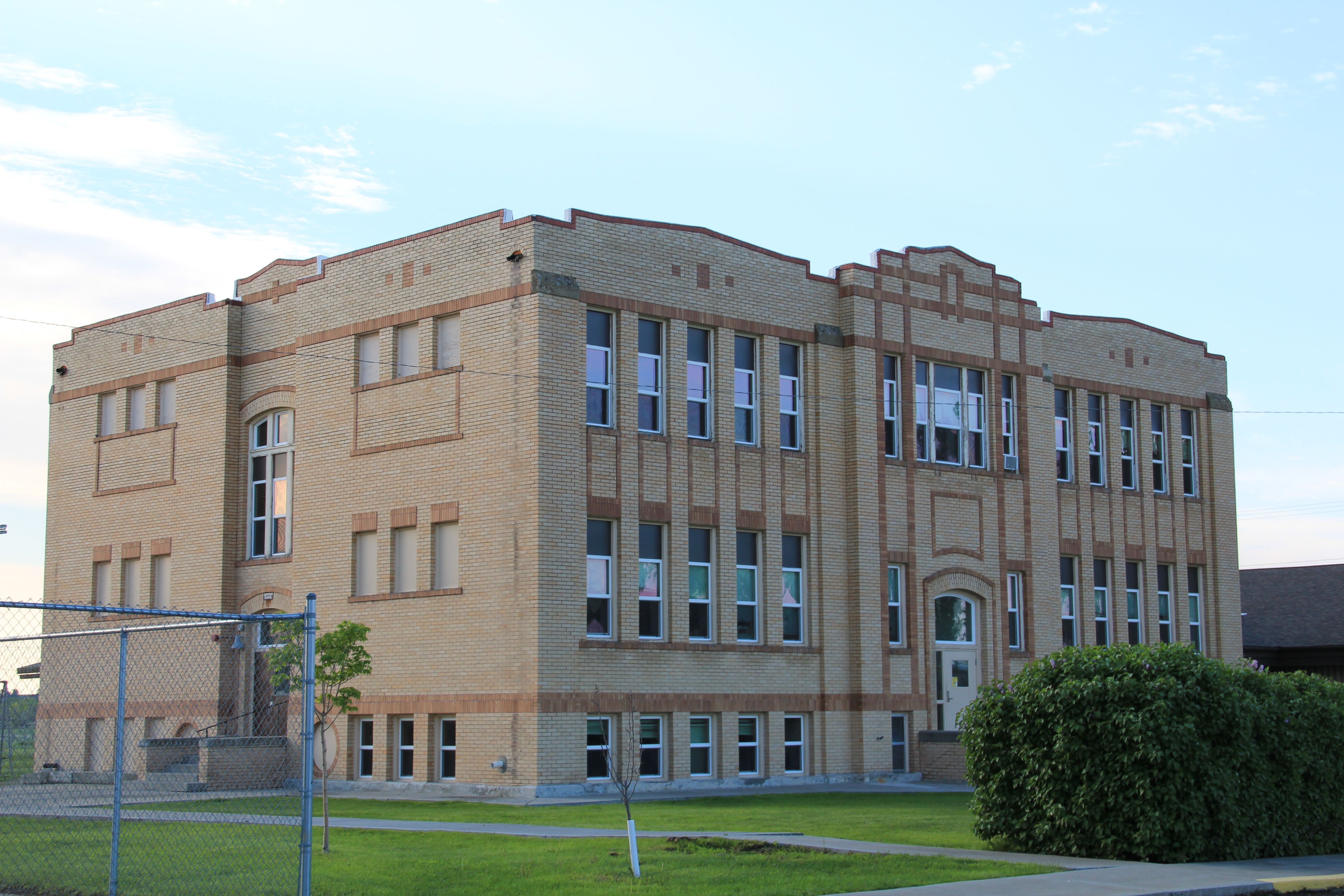The historic two-story with full basement yellow brick Lavina Public School is not on the National Register but this early 20th century building is another key landmark. Its exterior architectural features speak to the restrained styles of public architecture often found in the region. Another community landmark is the joint United Methodist and Lutheran church of Lavina–the two congregations share this Gothic-styled early 20th century building to sustain it and themselves as viable congregations.