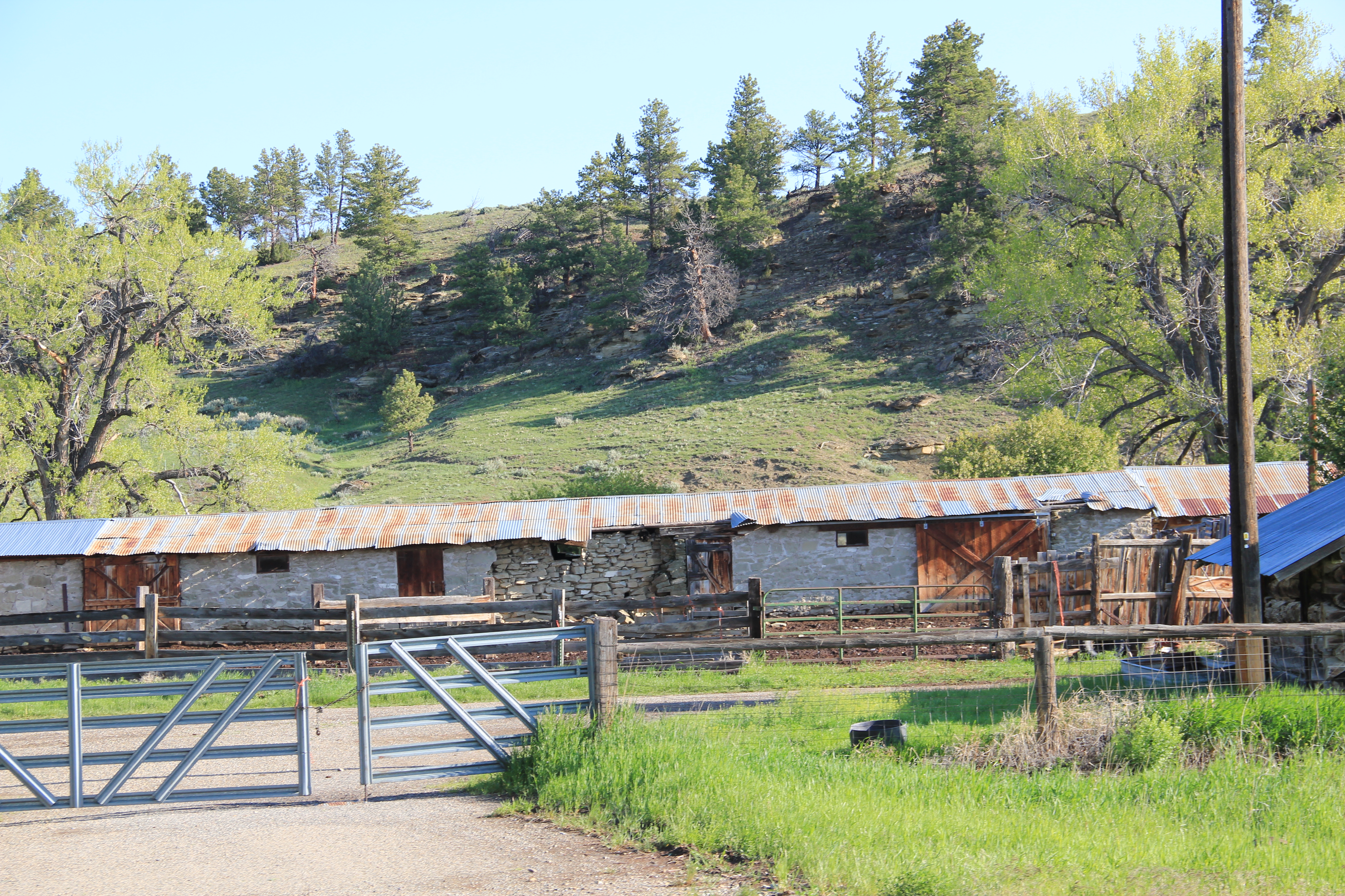 town’s eastern border the Sims-Garfield Ranch, a rambling assortment of vernacular-styled log and stone outbuildings and two vernacular style residences is the only town property listed in the National Register. Nestled between U.S. Highway 12 and the rocky bluffs of the Musselshell River, it is evocative of the county’s roots as a ranching landscape, a place of work and pride that survives today.