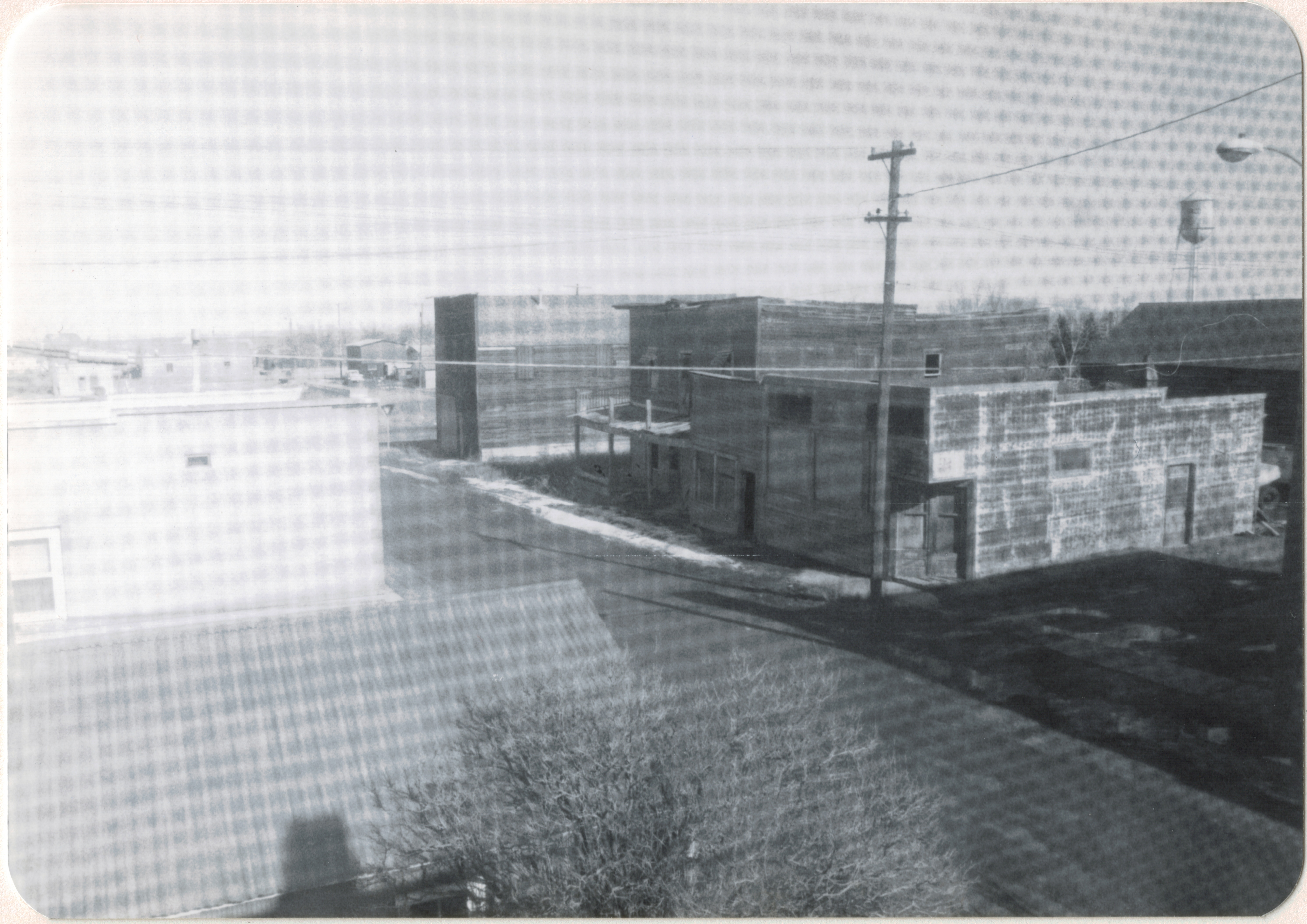 However, the commercial buildings that once lined the stem of the T are missing. Here is a view from a window in the second floor of the bank building that show some of the buildings.