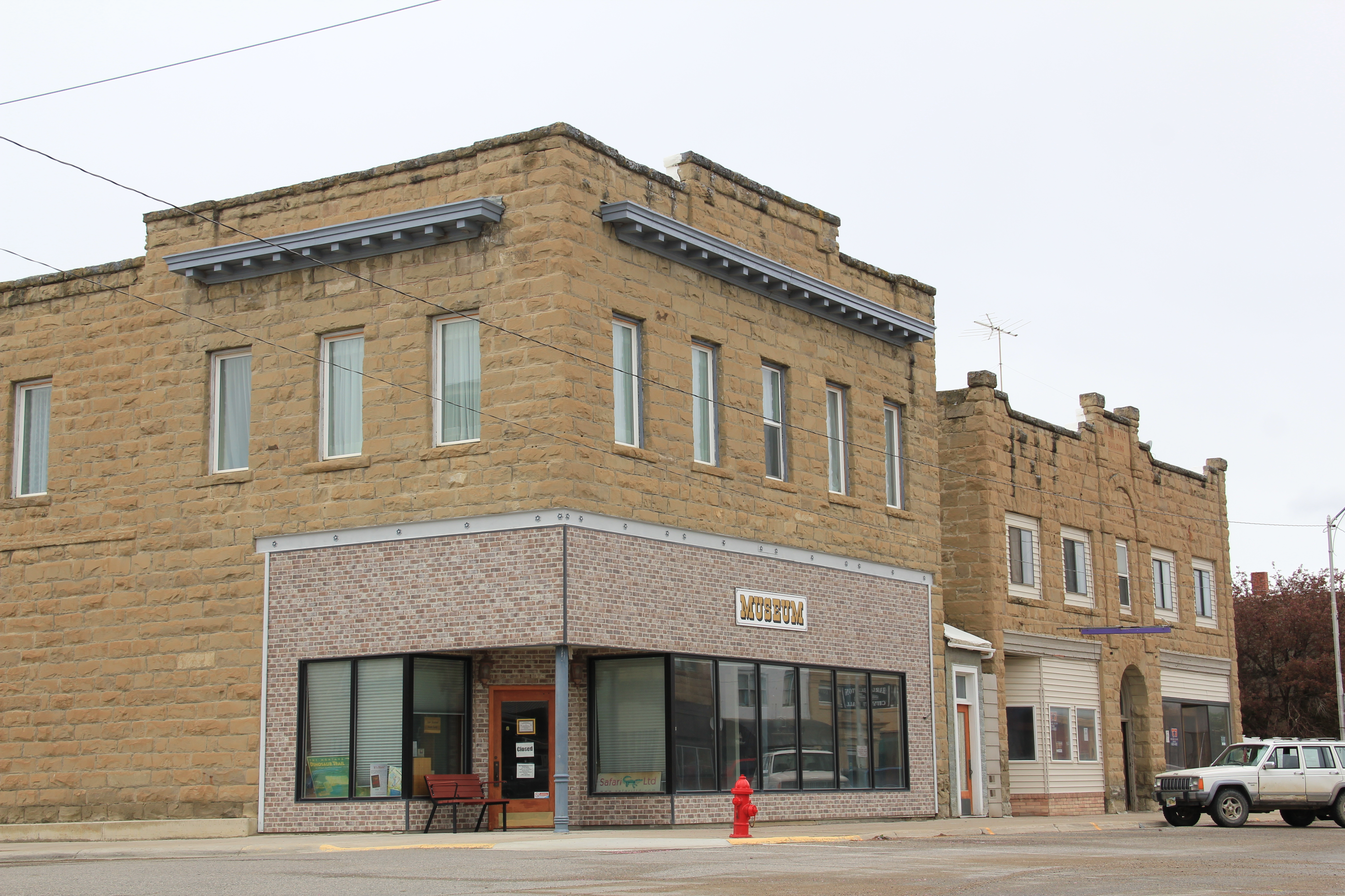 Two buildings from the county’s beginnings are a one-story brick Classical style bank building, which like so many in the region closed its doors during the homesteader bust and the Great Depression, and the Golden Valley County Courthouse, appropriately the town’s most imposing building.