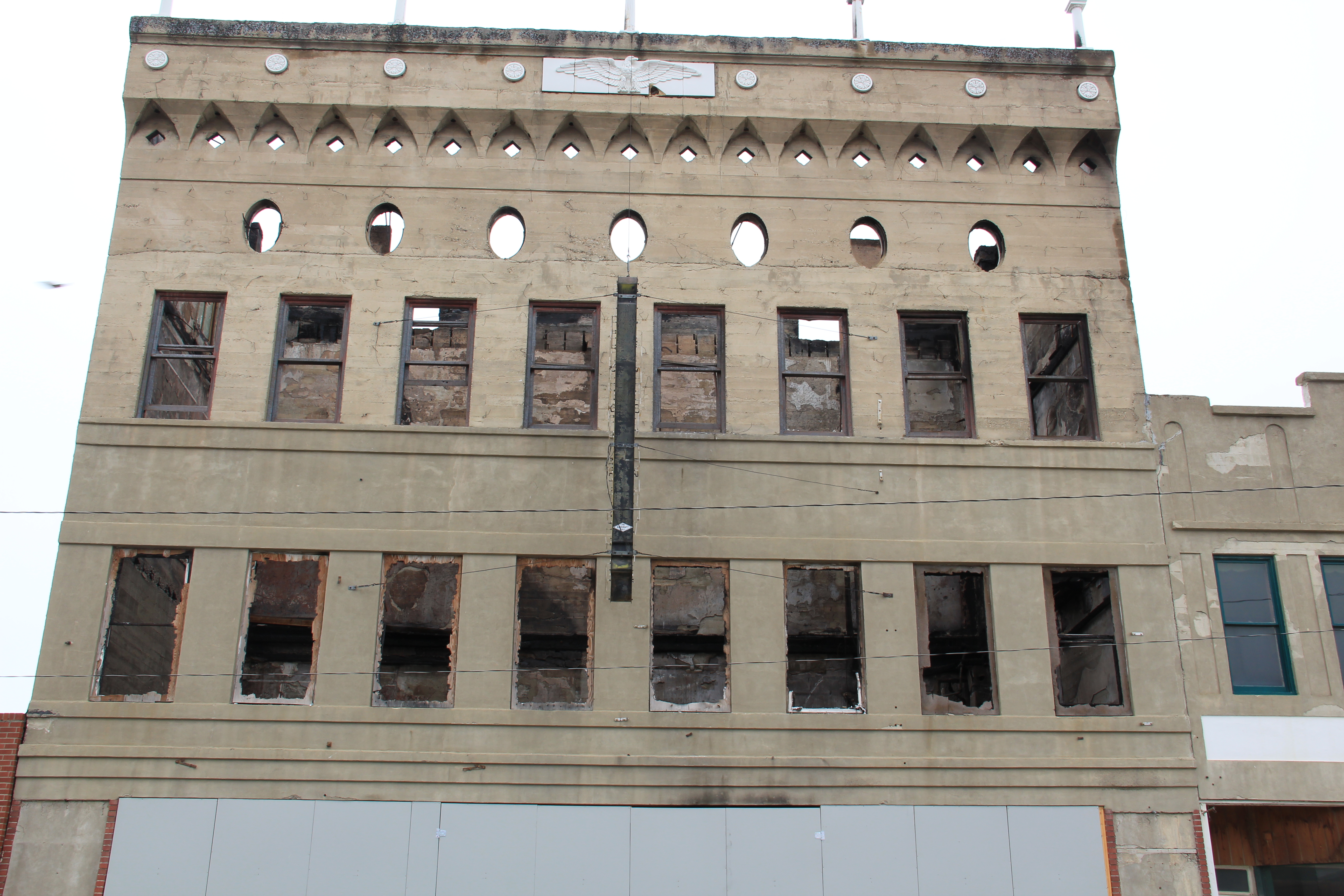 The next decade has not been so kind. Owners have placed a clock in the cornice, eliminating the original dating of the building, plus brass lanterns have appeared on the second floor and it needs painting and repairs. But the building is still open, and in use, and those are huge steps toward compared to 30 years ago.
